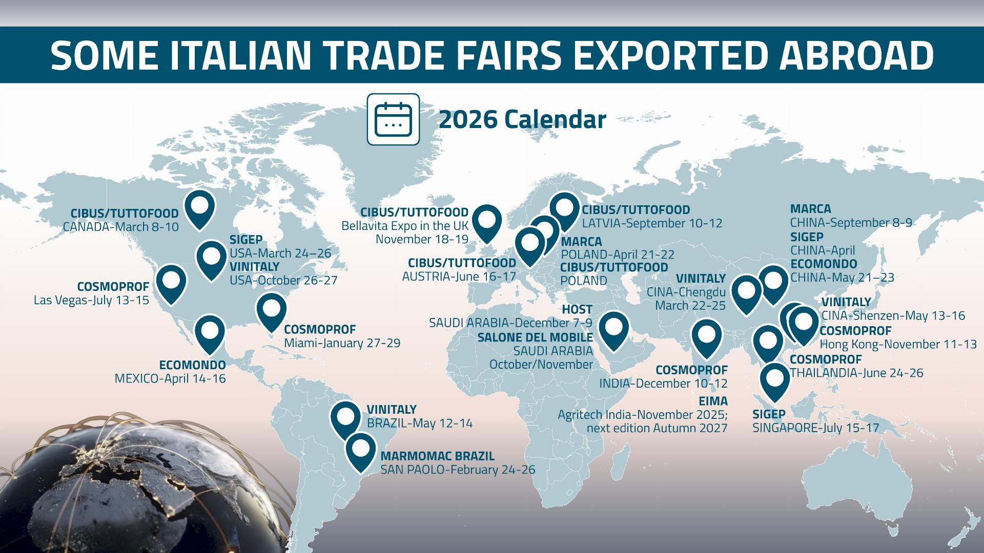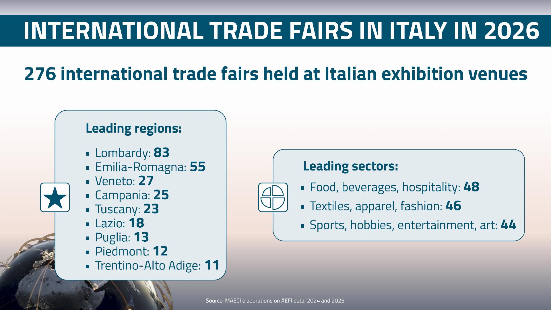 Per il 2026, sono già previsti 878 appuntamenti, con 276 fiere internazionali e 202 nazionali.